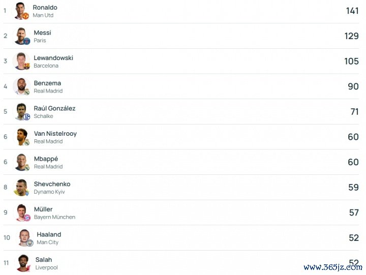 此役事后,哈兰德在欧冠赛场50场比赛打进52球,卓绝51球的亨利,挤进欧冠历史弓手榜前十,与萨拉赫并排第10位。