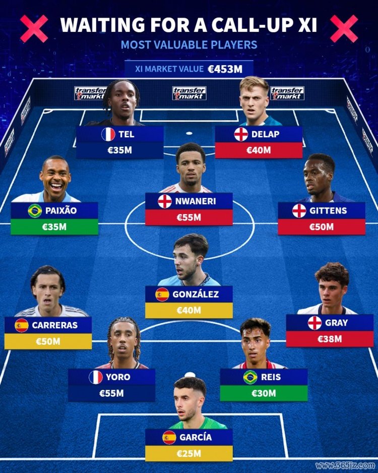 无缘国度队身价最高声势(总价4.53亿欧,指从未入选国度队)