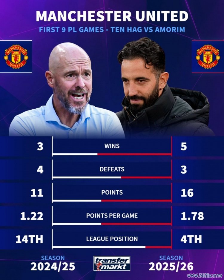 10月26日讯 曼联在第9轮英超焦点战4-2力克布莱顿,不竭了近期的出色势头。《转会市集》也对比了曼联和上赛季同时的英超数据。
