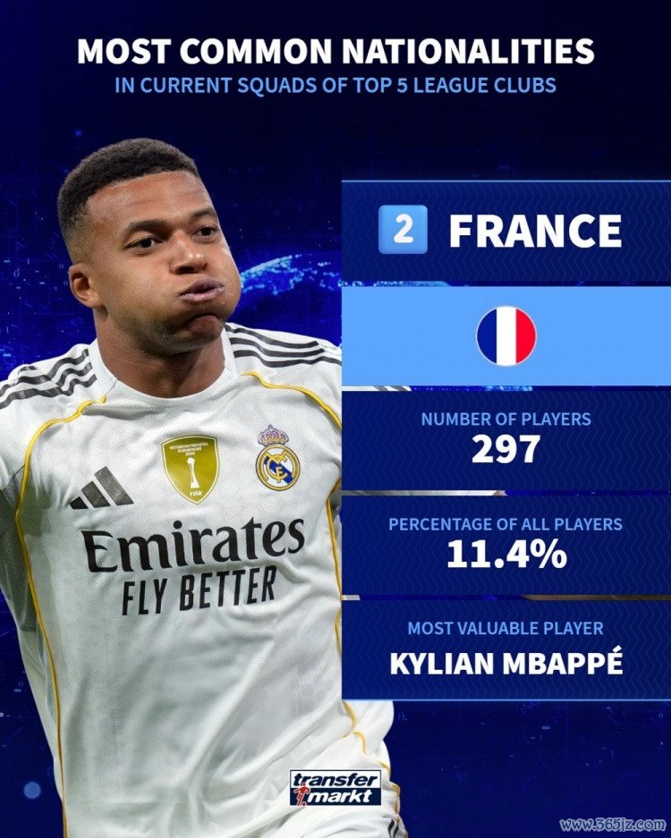 法国:297东说念主,近些年法国足球是东说念主才济济,上周末的意大利国度德比(尤文图斯4-3海外米兰),就有法国图拉姆兄弟德比,大小图拉姆各为其主,均获得进球。