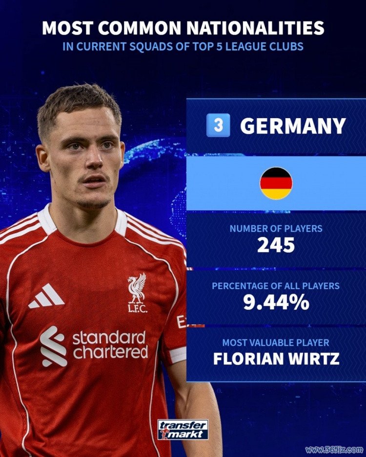 德国:245东说念主,德国球员启动不局限于德甲,本年夏窗维尔茨、沃尔特马德为代表,均转战更具流量和竞争力的英超联赛。