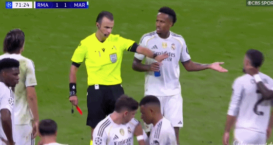 姆巴佩在寻找巴尔韦德——卡瓦哈尔被罚下,那么队长袖标应该属于巴尔韦德。6秒之后,姆巴佩找到巴尔韦德,躬行将队长袖标戴在巴尔韦德手臂上。此时,米利唐、卡瓦哈尔还在与裁判喋喋不停。