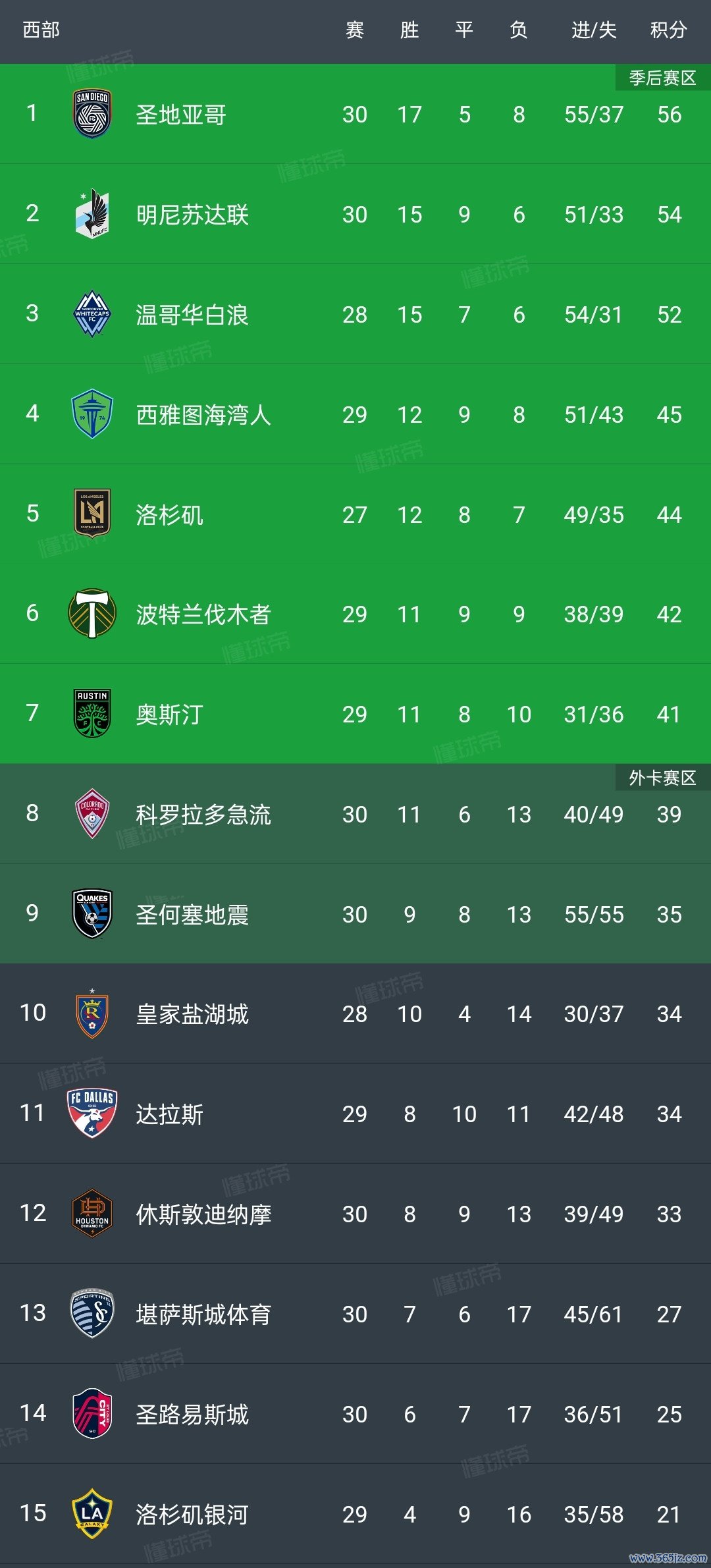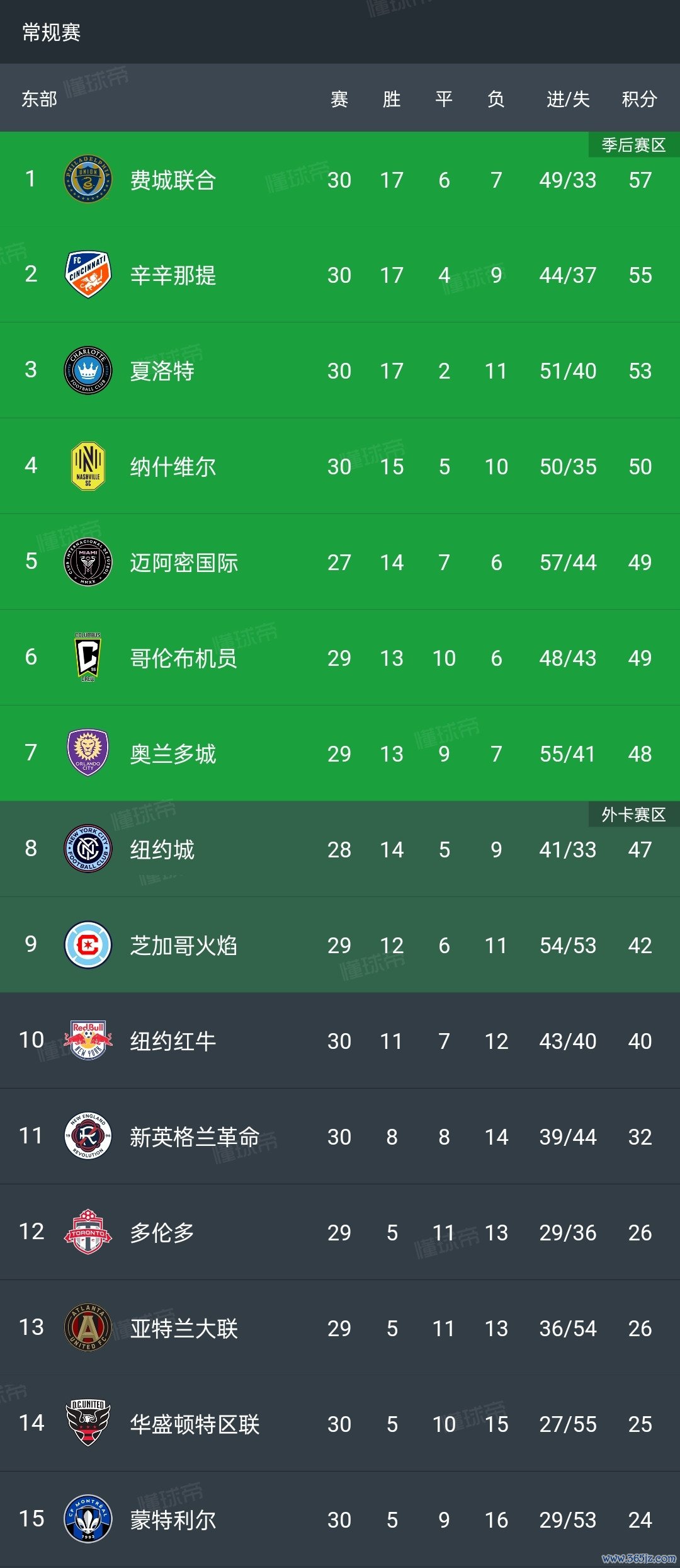 跟着梅西传射立功,迈阿密国外主场3-0打败西雅图海湾东说念主,好意思职联最新积分榜如下: