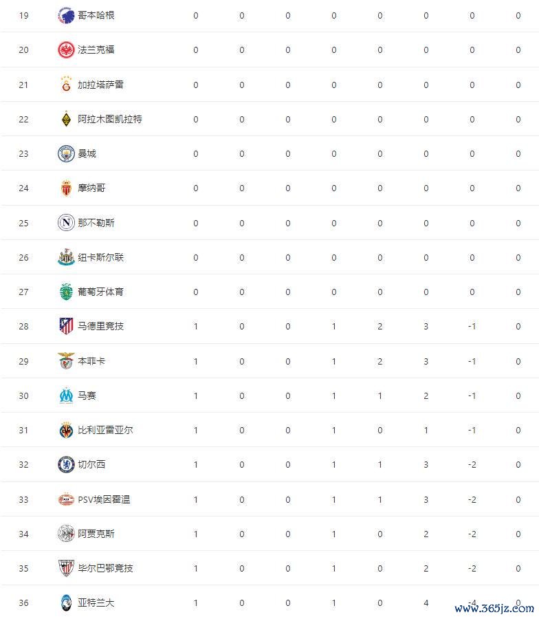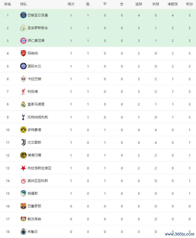 第二个比赛日末端之后,最新积分榜如下: