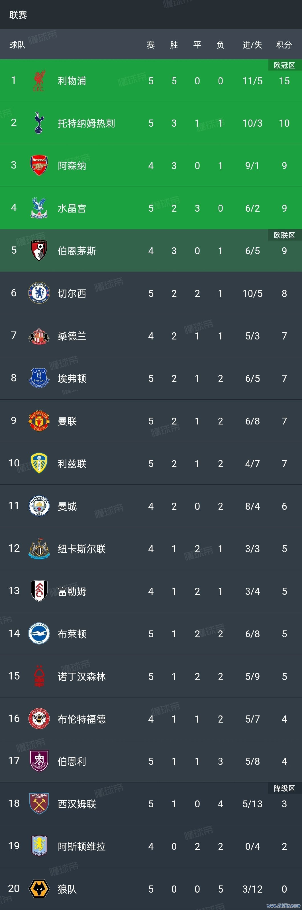 跟着以上六场比赛的澌灭,英超最新积分榜如下: