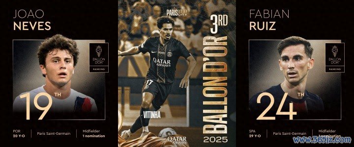 而上赛季为巴黎夺冠立下公垂竹帛的中场3东说念主,也皆入围提名,维蒂尼亚名依次3、若奥-内维斯名依次19、法比安-路易斯名依次24。组建这条中场却只销耗了巴黎1.23亿欧。