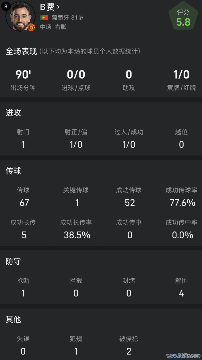 雷速体育9月27日讯 英超第6轮比赛,曼联客场1-3不敌布伦特福德。本场比赛,B费进展低迷,他在第75分钟罚丢了姆伯莫创造的点球,这亦然他本赛季第二次罚丢点球。
