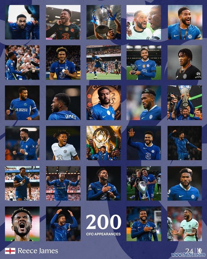 切尔西官推晒出海报,并写谈:“200场里程碑得到进球,里斯-詹姆斯是纯血切尔西东谈主。”