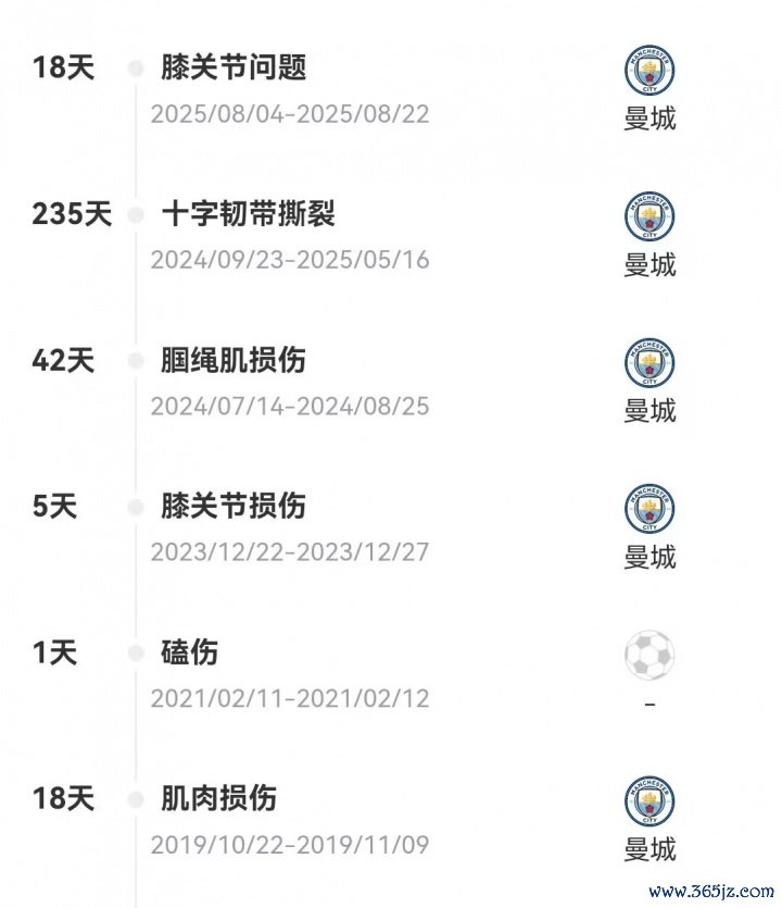 2024/25赛季初,罗德里遭受膝盖前十字韧带扯破(ACL)的重伤,休战235天。以金球先生的受伤为升沉点,曼城褪去了“七年六冠”本事的光环,提前参加了重建期。
