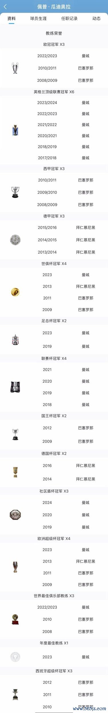 瓜迪奥拉抓教活命主要荣誉一览↓